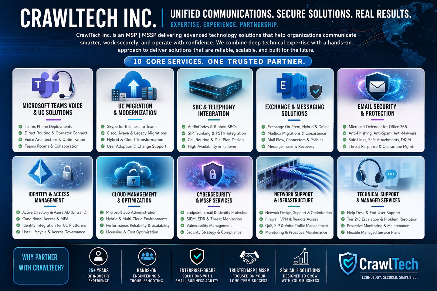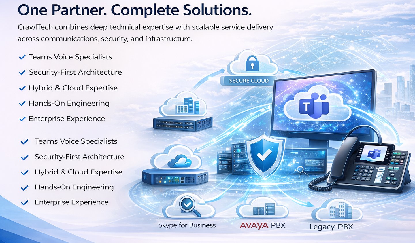 Whether you're migrating from legacy systems or optimizing Teams Voice, CrawlTech can help.