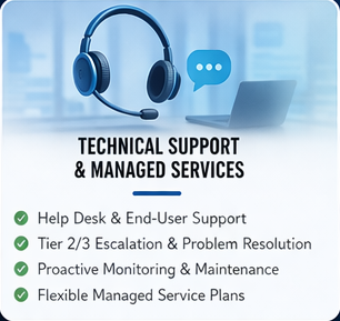 Our proactive managed services keep your systems running smoothly, reduce downtime, and give your team the responsive support they need — whether on-site or remote