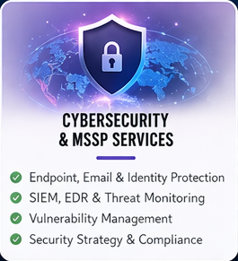 As a Managed Security Services Provider (MSSP), every professional service we deliver is hardened, monitored, and built with cybersecurity in mind.