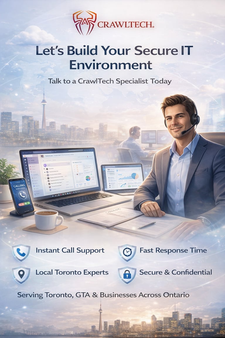 CrawlTech Inc. is a Canadian Managed IT Services (MSP) and Managed Security Service Provider (MSSP) proudly serving businesses across Durham Region, the Greater Toronto Area (GTA), and across Canada.